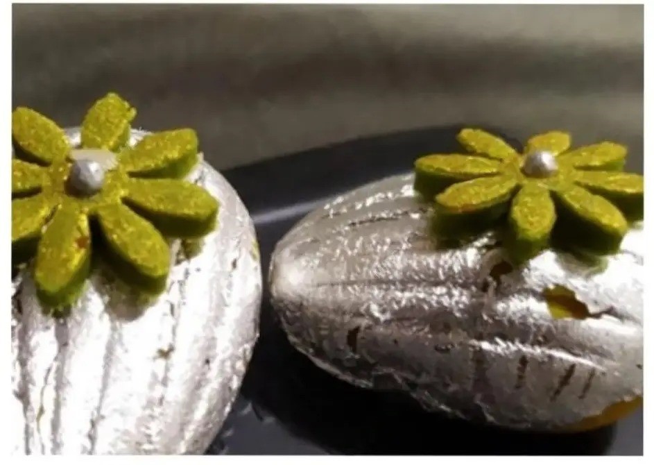 **Dryfruit Silver Glory Sweet** is a luxurious Indian confection that epitomizes indulgence and elegance. Crafted from a blend of premium dry fruits like almonds, cashews, and pistachios, this sweet is combined with finely ground cashew nuts, sugar, ghee, and cardamom to create a rich, creamy texture. The mixture is molded into exquisite shapes and adorned with a delicate layer of edible silver leaf, adding a touch of opulence. With its harmonious blend of nutty flavors and subtle sweetness, Dryfruit Silver Glory Sweet is perfect for special occasions such as Diwali, weddings, and festivals. Its elegant design and premium ingredients make it a sophisticated choice for gifting and celebrations.