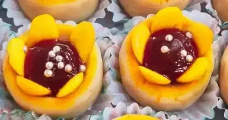 The exterior of the basket is adorned with intricate floral patterns and often garnished with edible silver or gold leaf, adding a touch of elegance. Inside, the sweet, nutty filling is rich and creamy, offering a satisfying taste experience.