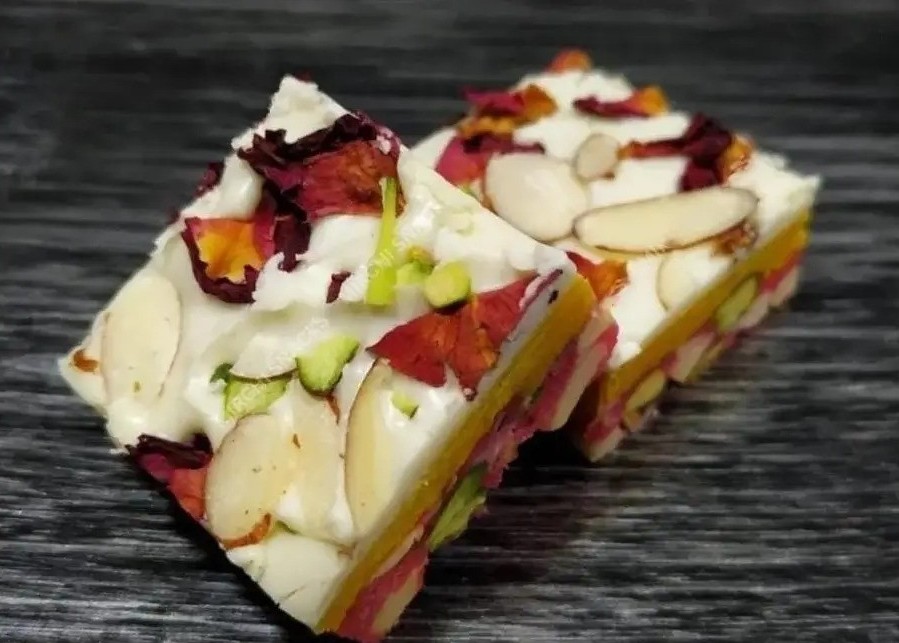 **Rose Dry Fruit Choco Delight** is a luxurious Indian sweet that combines rich chocolate with a medley of premium dry fruits and the delicate essence of rose. This indulgent treat features a smooth chocolate base mixed with finely chopped almonds, cashews, and pistachios, creating a delightful crunch. Infused with rose essence, it adds a subtle floral aroma that elevates the flavor profile. The mixture is shaped into elegant pieces and often garnished with edible rose petals or gold leaf for a sophisticated touch. Perfect for festivals, weddings, and special occasions, Rose Dry Fruit Choco Delight offers a harmonious blend of taste and elegance, making it a cherished gift or festive treat.