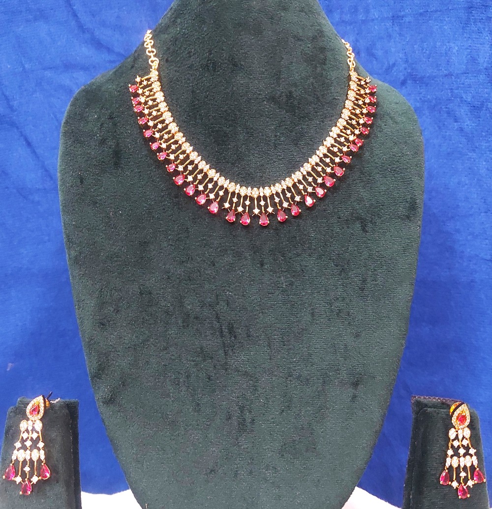 It features a gold plated base with pink stones, likely artificial and a design that is common in traditional indian jewellery.