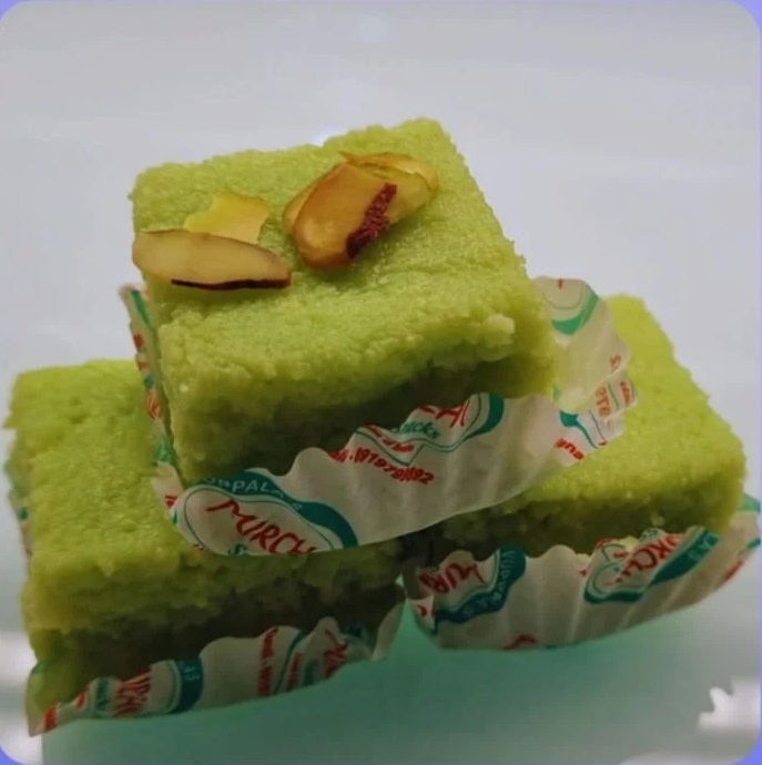 Our pure kalakand is made and mixed with a pistachio paste.